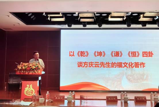 首发式上,福建省福文化研究院院长马照南对该书给予高度评价。他指出,该书由福文化专家方庆云书记耗时 30 余年精心编纂,分为两大板块,兼具理论深度与实践指导意义,呈现出五大显著特点与创新点。一、充满智慧之光,深刻阐释福文化精髓。方书记以六篇理论力作,深刻阐述了新时代福文化的核心要义,坚持以人民为中心的福文化发展思想。福文化是人民之福、时代之福。福文化作为中华民族传统文化的重要组成部分,承载着人们对美好生活的向往和追求。二、契合时代之需,有力推动福文化传播。福州是习总书记长期工作的地方,是公认的有福之州。方书记怀着对习总书记的深厚感情,饱含对有福之州的深厚感情,刻苦研究领悟福文化。他的研究很深入,很有特色。三、艺术引领之先,精巧绘就福文化美韵。著作第二部分,也是本书的一大亮点。方书记依据传统连体组合字的原理,结合“两个结合”的精神,创造性地转化与发展了福文化,设计并创作了340多幅福文化美术作品。方书记深受中国传统福文化的影响,很早就致力于将这一文化精髓,通过书法艺术进行传承和创新。他坚信福文化是中华民族的重要精神财富,体现了人们对美好生活的向往和追求。他的福文化艺术创作不仅注重技艺的精湛,更强调文化内涵的挖掘和表达。他运用象形书法巧妙地将“福”字进行象形化处理,使其既具有书法的艺术美感,又富含深厚的文化内涵。四,化民成俗之效,绵延赓续福文化之脉。方书记作品涵盖了福字造型、社会通用、企事业单位、家庭福、美术工艺品、节日、地名、书法等多个领域,既保留了传统文化的精髓,又融入了现代审美元素,具有很强的实用性和观赏性,起到化民成俗之效果。五、担当尽责之心,树立典范福文化之福。作为老领导老干部,方书记一直是我们的榜样。他无私奉献,积极参与各类福文化宣传活动,通过讲座、义写春联等形式将福文化传递给更多的人。他创作的福文化艺术作品不仅具有艺术价值,还承载着传承和弘扬中华优秀传统文化的使命。他的研究传播如投入湖面的石子,激起层层涟漪,为大家树立榜样。