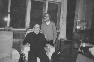 时间已超过医生的规定了。最后,表叔高兴地和我们一起照相,见我们并排站在他的后面,抱歉地说:“我有病起不来。”照了一张后,他说:“再来一张吧。总而言之,请你们回去代我向乡亲们问好。”当我们依依不舍地道别时,表叔又说:“愿再次见到你们,欢迎你们来。”