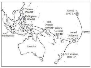 关于福建先民的产生与演化,我涉猎了许多的文献及考古发掘报告,也陆续写了若干杂记,其梗概大致为非洲智人之南来——闽在海中——七闽——闽越国——中原人南渐,将在以下的“汪汪夜读”中娓娓道来。据人类细胞线粒体 DNA 的研究,非洲智人为全球人类最早的祖先,当是大概率的事实,然其如何辗转入国中及福建,还有许多缺环,这里先谈“闽在海中”。
