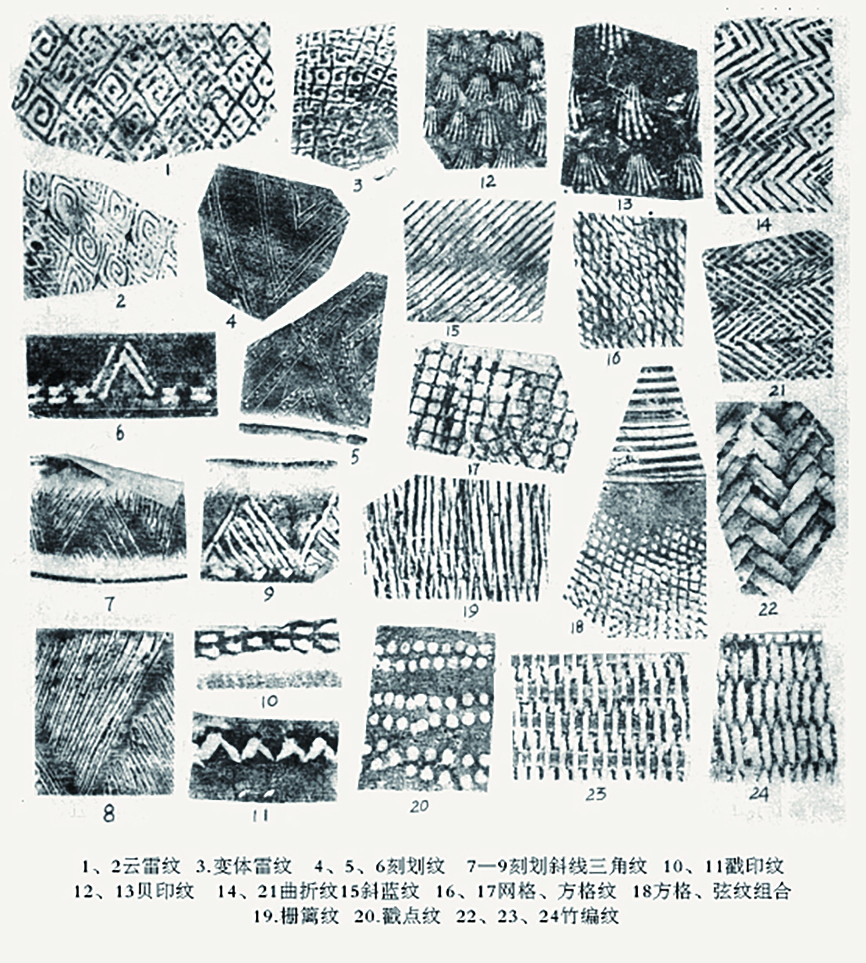 黄瓜山遗址上层出土的陶片纹饰拓本